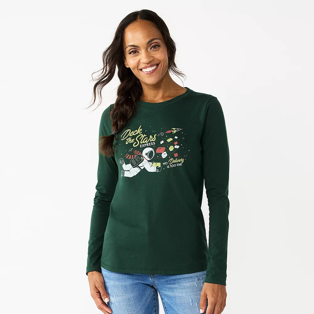 You won’t be able to stop smiling this Christmas season with this women’s graphic tee from Sonoma Goods For Life.